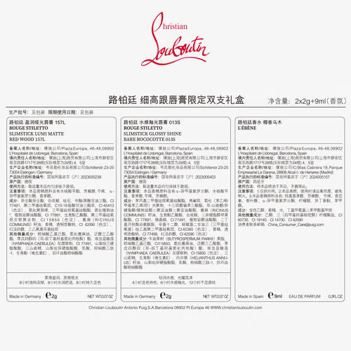 路铂廷CL细高跟唇膏:这款口红同样是限量版,包含双支礼盒,并配有精美的包装和高定化妆包,适合作为礼物。